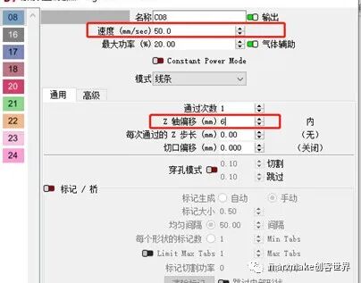②雙擊切割設(shè)置編輯器里,切割速度調(diào)整為50mm/s。