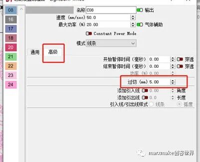 ④高級選項中過切改為5。