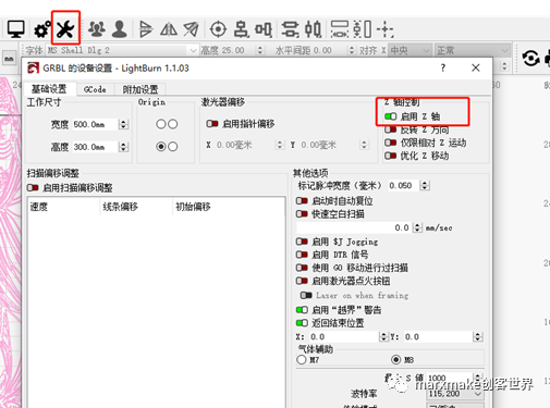 ①設(shè)備設(shè)置中打開Z軸偏移。