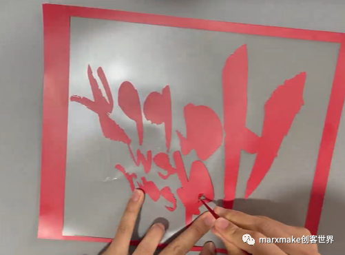 將切割完成的作品取出,用鑷子剝離出多余部分。